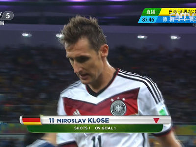 北京时间7月14日3时(巴西时间12日16时),第20届世界杯决赛在里约热内卢马拉卡纳球场打响,德国与阿根廷争夺冠军。下半场第88分钟,德国队换人,11号克洛泽下,换上19号格策。克洛泽下场,现…[详细]