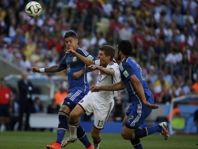 北京时间7月14日3时(巴西时间12日16时),第20届世界杯决赛在里约热内卢马拉卡纳球场打响,德国与阿根廷争夺冠军。加时赛第97分钟,阿根廷进攻左侧斜传禁区,胡梅尔斯试图头球解围,跳起后没…[详细]